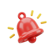 Glossy 3D red notification bell icon with alert lines, perfect for apps, UI design, reminders, messages, and modern digital interfaces.