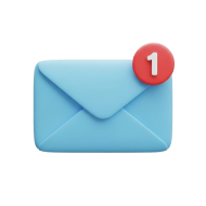 High-quality PNG of a blue email envelope with unread message notification badge. Perfect for apps, websites, UI dashboards, and mockup designs.