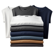 High-quality PNG of neatly folded minimalist t-shirts in neutral tones, perfect for ecommerce, fashion branding, mockups, or catalog design